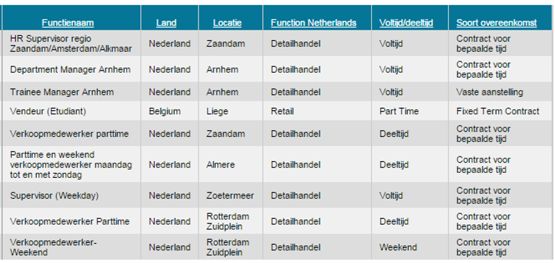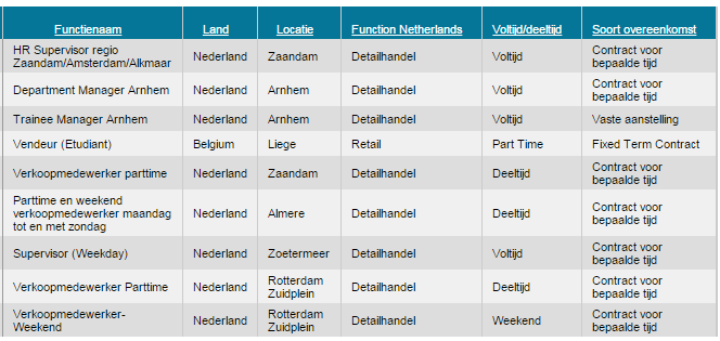 Als goede optie voor het vinden van de vacatures en jobs mag de webstek van Primark natuurlijk niet ontbreken. In enkele klikken vind je er overzichten zoals onderstaande: